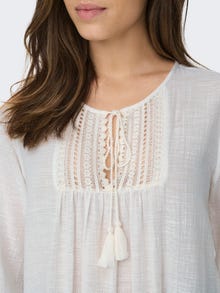 Få en fantastisk look til skole, jobb og hverdagsaktiviteter i kule styles som er enkle å matche med dine garderobefavoritter. Bomull er laget av naturfibre, noe som gir et mykt og pustende stoff. - Produkttype : Tunika - Hals : O-hals - Erme : 3/4 ermer - Mansjetter : Elastiske mansjetter - Lengde/størrelse : Minilengde - Detaljer : Blondedetalj - Passform : Regular Fit