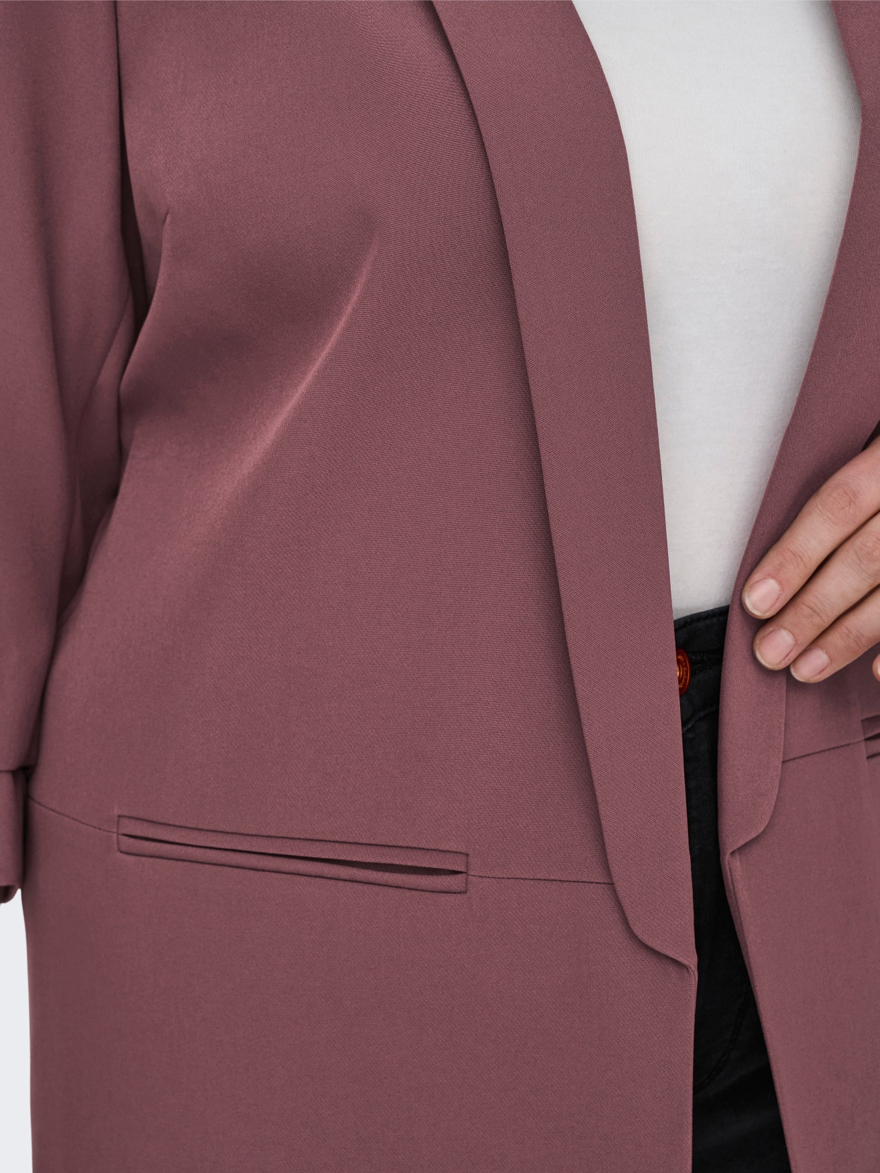 Løft looken din med en tidløs blazer, kle opp favorittjeansen eller sett prikken over i-en på festlooken din. ONLY CARMAKOMA er for kvinner med kurver som elsker mote og uttrykker sin personlige stil med selvtillit. Kolleksjonene har moderne denim, flatterende passformer og stiler for enhver anledning – fra edgy og kul til feminin og klassisk. Vårt utvalg av pluss-size-klær er designet for å fremheve kurvene dine og gi komfort, slik at enhver pluss-size-kvinne kan føle seg vakker og selvsikker i utseendet sitt. - Produkttype : Blazer - Hals : Omvendt krage - Ermer : Plisserte ermer - Lommer : Dekorative forlommer - Lengde/størrelse : Lang - Fôr : Polyesterfôr for en behagelig følelse - Passform : Regular Fit