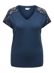 Forvandle hverdagsantrekket ditt på sekunder ved å legge til en feminin topp for en myk og ren look. Jersey er et mykt og stretchy materiale som er designet for maksimal komfort. ONLY CARMAKOMA er et internasjonalt motemerke for kvinner med former i str. 42–54, og skaper styles som fremhever alle fordelene ved en vakker, feminin og formfull silhuett, slik at du ser fantastisk ut hele dagen, hver dag. Cyrve-styles er designet for å passe til formfulle kvinnekropper.. - Produkttype : Topp - Hals : V-hals - Erme : Korte ermer - Detaljer : Blondedetalj - Kroppstype : Curve - Passform : Regular Fit