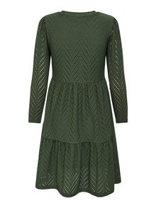 Ingen garderobe er komplett uten myke, tidløse basisstyles som er perfekte til enhver anledning og sesong. JDY er et komplett, internasjonalt motemerke som tilbyr rimelige og trendy produkter til motebevisste forbrukere. - Produkttype : Kjole - Hals : O-hals - Erme : Lange ermer - Lengde/størrelse : Minilengde - Detaljer : Rysjer - Passform : Regular Fit