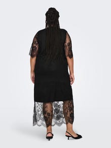 Oppdater garderoben med en stilig kjole, og skap en fantastisk look som passer til enhver anledning og årstid. ONLY CARMAKOMA er et internasjonalt motemerke for kvinner med former i str. 42–54, og skaper styles som fremhever alle fordelene ved en vakker, feminin og formfull silhuett, slik at du ser fantastisk ut hele dagen, hver dag. - Produkttype : Kjole - Hals : Høy hals - Erme : 2/4 ermer - Fôr : Polyesterfôr for en behagelig følelse - Detaljer : Blondedetalj - Passform : Regular Fit