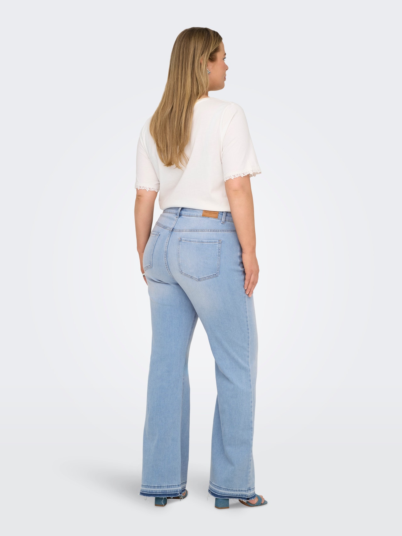 Legg til en ekstra kant til antrekket ditt med våre plus size-jeans med utsvingt passform, som kombinerer komfort med et stilig, benforlengende snitt. Designet har en flatterende midjehøyde og en lett utsvingt benåpning, noe som skaper en vakker og feminin silhuett. Den myke stretchdenimen gir bevegelsesfrihet hele dagen. Perfekt for både hverdagsutseende og mer festlige anledninger.