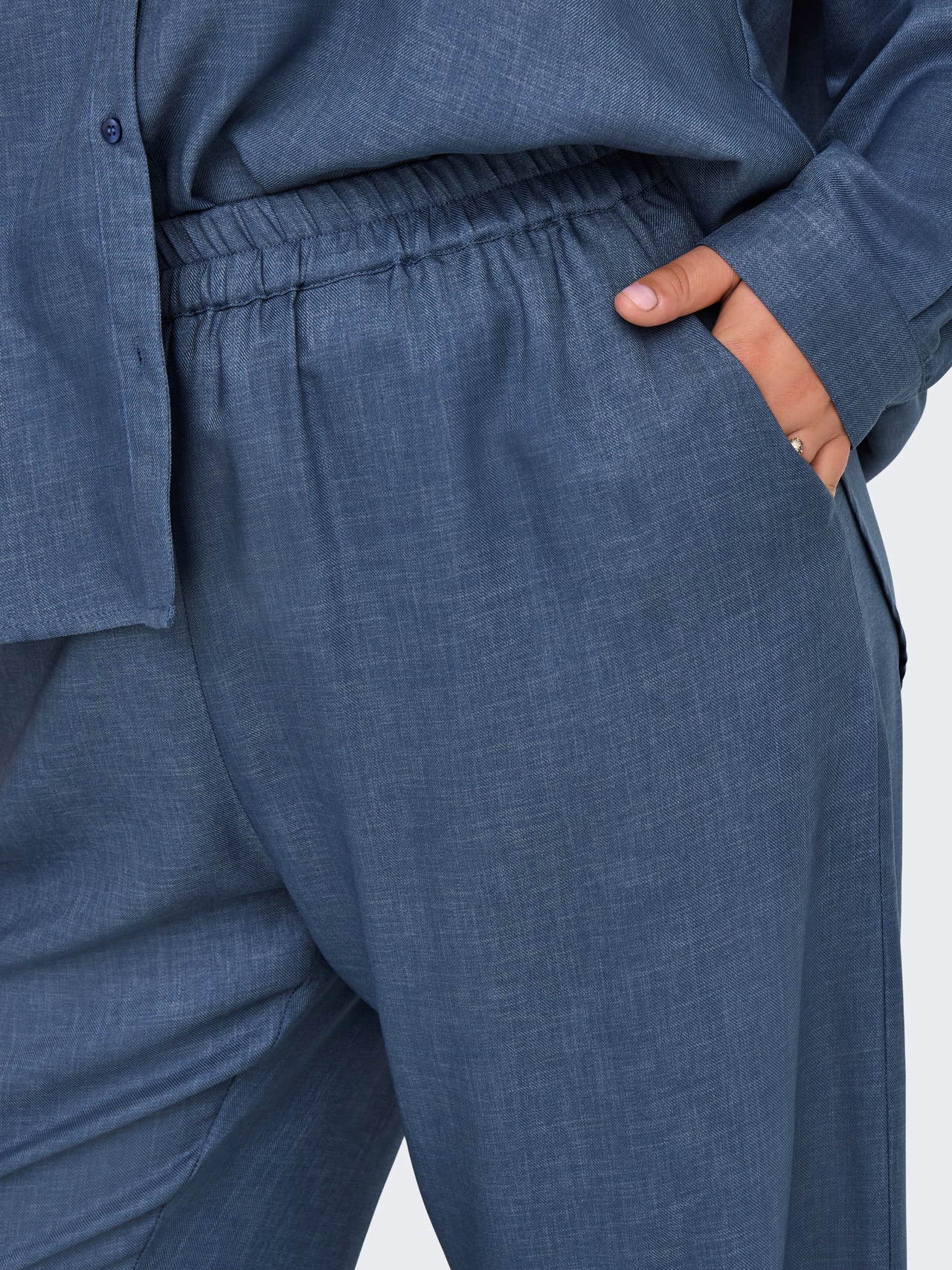 Finn den perfekte buksen, og match med en enkel skjorte og et par joggesko til hverdags, eller kombiner med en festtopp og høye hæler til en kveld på byen. ONLY CARMAKOMA er et internasjonalt motemerke for kvinner med former i str. 42–54, og skaper styles som fremhever alle fordelene ved en vakker, feminin og formfull silhuett, slik at du ser fantastisk ut hele dagen, hver dag. - Produkttype : Bukser med vide ben - Detaljer : Elastisk linning - Passform : Regular Fit