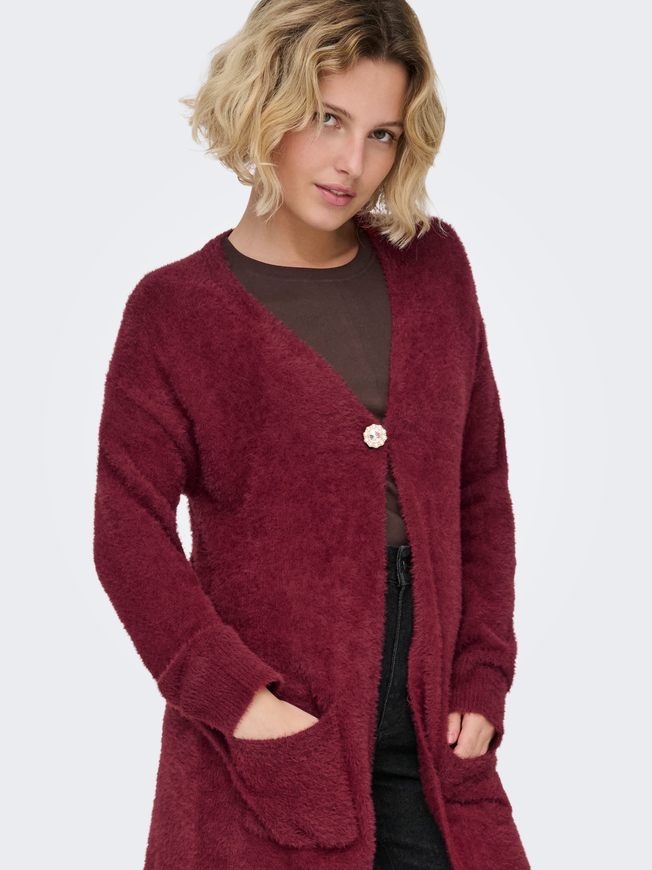 Fullfør looken din med en strikket cardigan – en must-have i alle garderober og perfekt til både vinterdager og sommerkvelder.