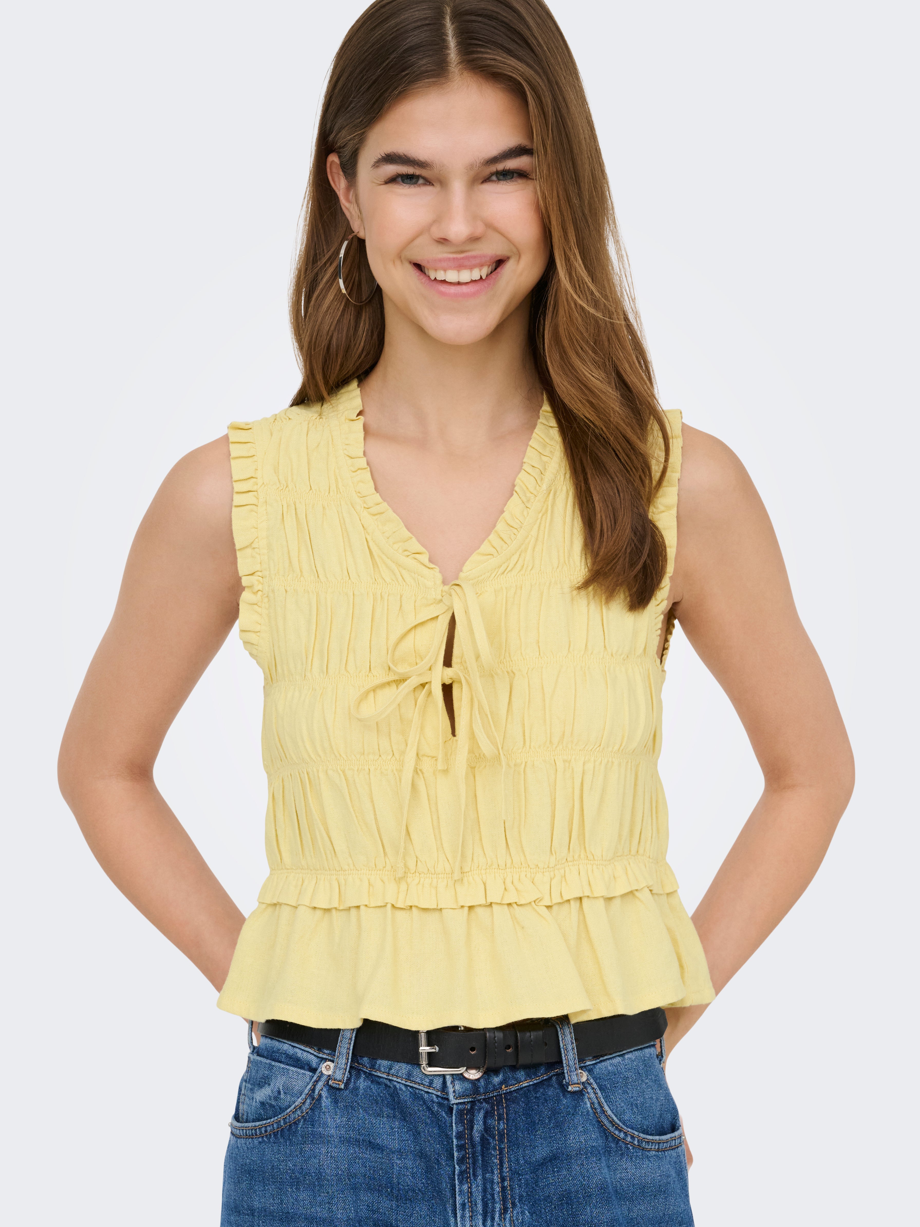 Forvandle hverdagsantrekket ditt på sekunder ved å legge til en feminin topp for en myk og ren look.