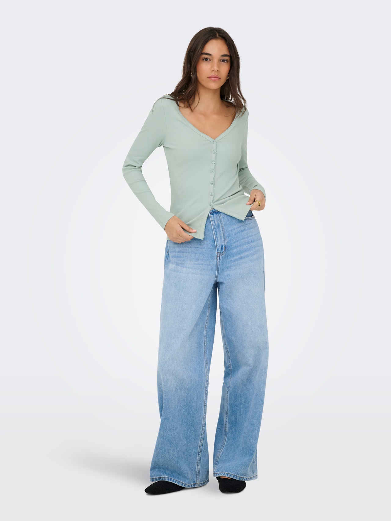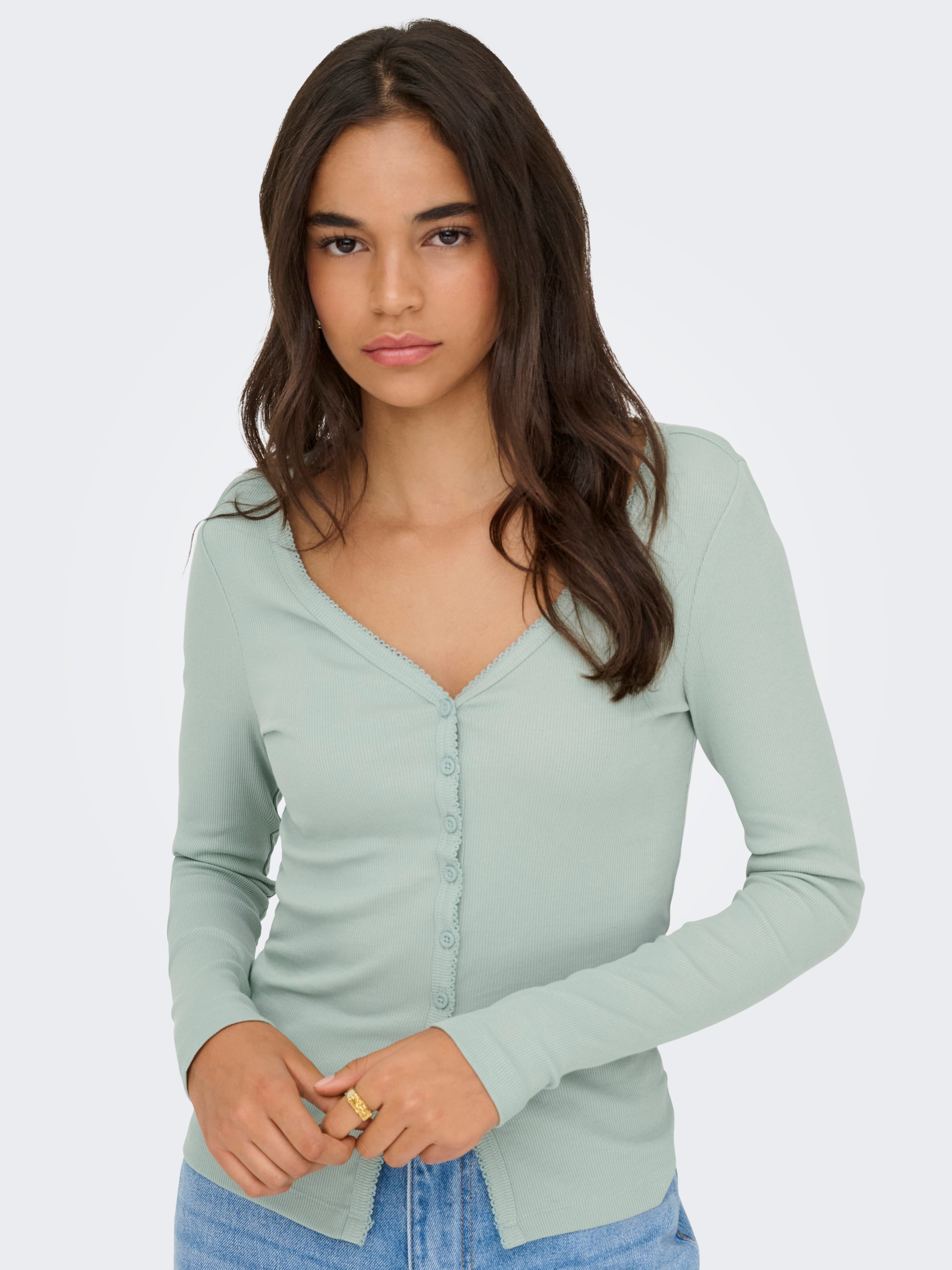 - Hals : V-hals