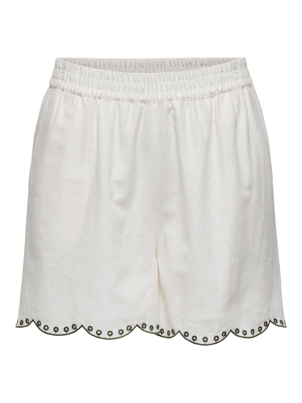 Unngå garderobekriser med en shorts og din favorittopp – perfekt til hverdags og festlige anledinger. - Produkttype : Shorts - Høyde til midje : Høy midje - Detaljer : Brodert detalj, Elastisk linning - Passform : Regular Fit