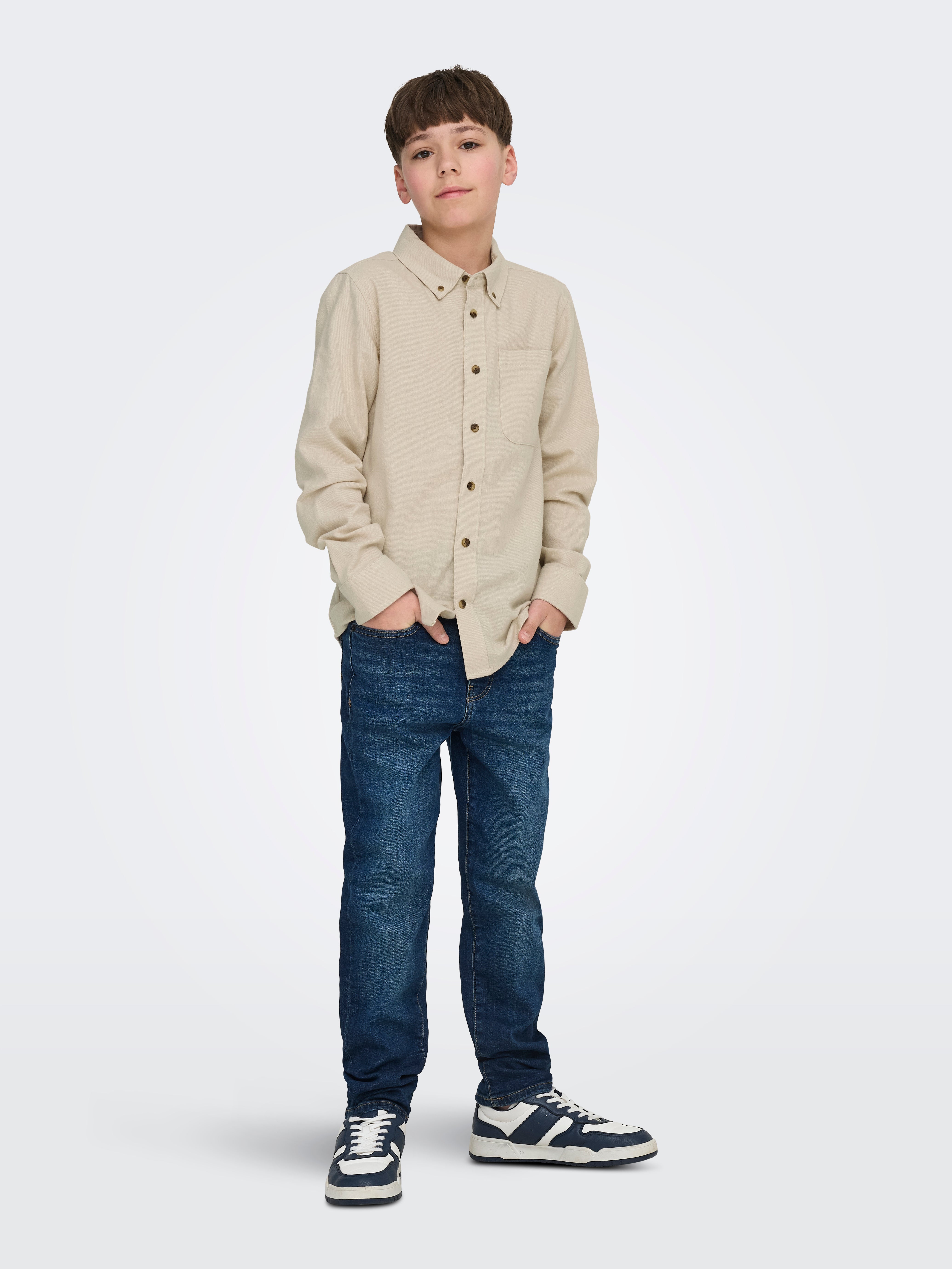 Skjorter til gutter fra ONLY & SONS JUNIOR er perfekte til både skole og spesielle anledninger. Fra klassiske skjorter til mer avslappede stiler, de tilbyr et kult og trendy utseende. Våre skjorter kombinerer komfort og stil, noe som gjør dem ideelle for gutter som ønsker å uttrykke sin personlige stil. Bruk dem sammen med jeans og joggesko for en avslappet, men stilig stemning.