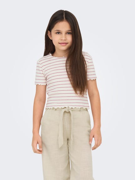 is ONLY Girls de juiste plek om ze te vinden! Ons assortiment weerspiegelt altijd de laatste trends en meest modieuze stijlen. Onze tops zijn ontworpen met oog voor leuke en mooie details die perfect passen bij meisjes tussen 4-14 jaar oud. Vind de perfecte outfit voor school bij ONLY Girls! Combineer een mooie gestreepte top met een paar jeans. In de zomer kunnen de broeken gemakkelijk worden vervangen door een paar shorts.