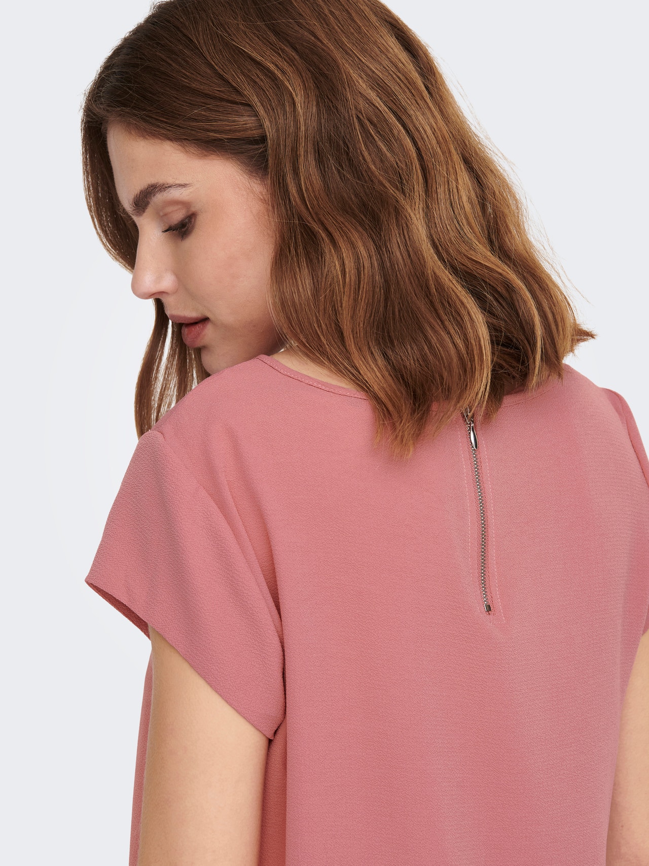 Zie er op je best uit voor school, werk en dagelijkse bezigheden in toffe items die je moeiteloos kunt combineren met je favoriete kleding. - Producttype : Top - Hals : O-hals - Mouw : Korte mouwen - Sluiting : Ritssluiting - Details : Langer aan de achterkant - Pasvorm : Regular fit