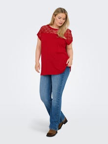 Zie er op je best uit voor school, werk en dagelijkse bezigheden in toffe items die je moeiteloos kunt combineren met je favoriete kleding. Viscose is een zachte en lichte stof die mooi valt en hierdoor vergelijkbaar is met zijde. ONLY CARMAKOMA is voor vrouwen met rondingen die van mode houden en hun persoonlijke stijl met zelfvertrouwen uitdrukken. De collecties bevatten modern denim, flatterende pasvormen en stijlen voor elke gelegenheid - van edgy en cool tot vrouwelijk en klassiek. Onze selectie plus-size kleding is ontworpen om je rondingen te accentueren en comfort te bieden, zodat elke plus-size vrouw zich mooi en zelfverzekerd kan voelen in haar look. - Producttype : Top - Hals : O-hals - Mouw : Korte mouwen - Details : Kanten detail - Pasvorm : Regular fit