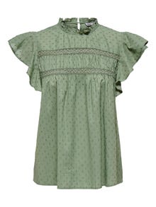 Maak een moeiteloze overstap van de lente naar de zomer met items die zijn gemaakt voor het tussenseizoen. - Producttype : Top - Hals : O-hals - Mouw : Korte mouwen - Sluiting : Knoopsluiting - Details : Ruches - Pasvorm : Regular fit