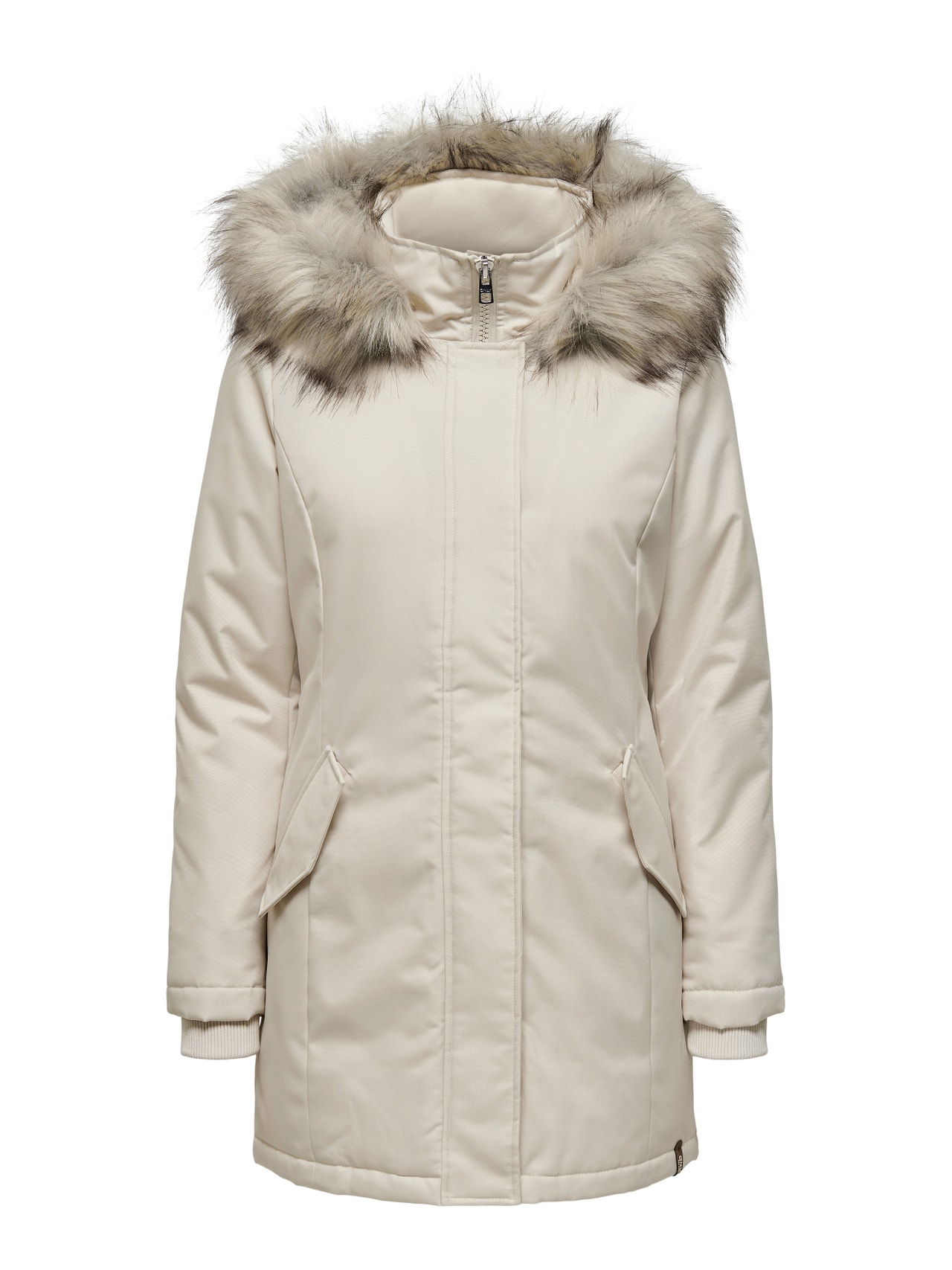 - Hals : Kap w. Afneembare rand van synthetisch bont