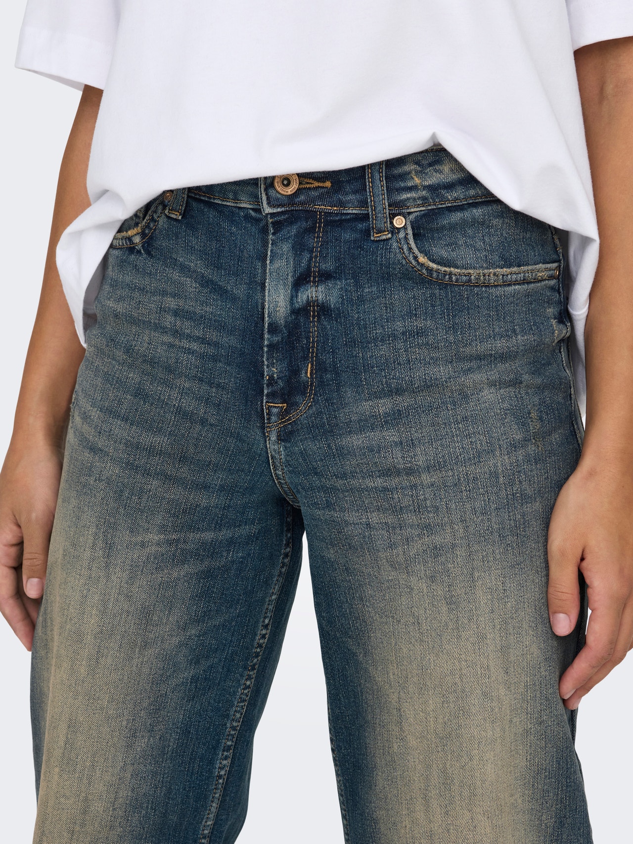 - Wassing/Afwerking : Gekleurd met een gelige tint om voor een gedragen look, Mid wash voor een verwassen en gedragen denim look