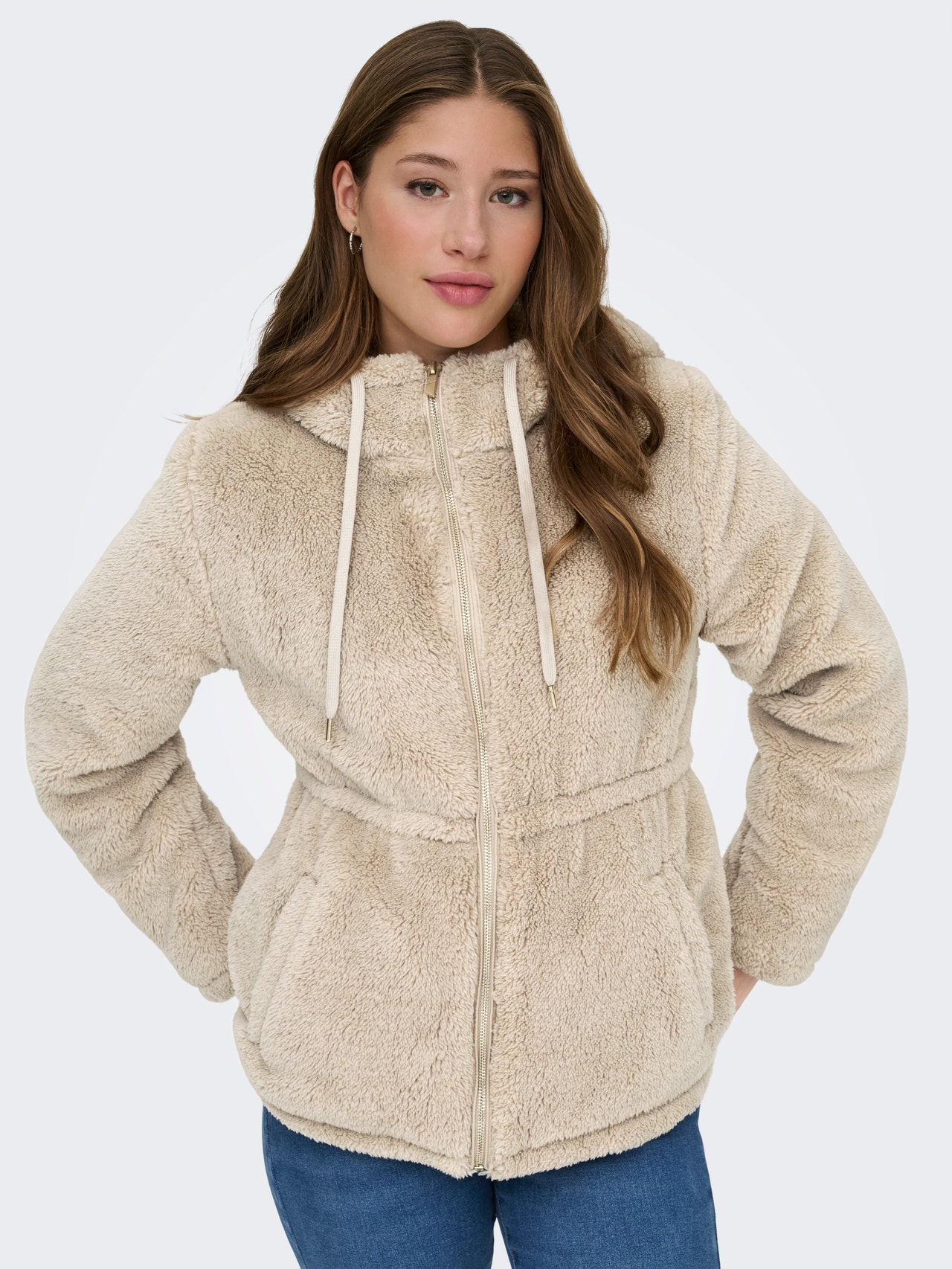 - Hals : Capuchon met verstelbaar koord