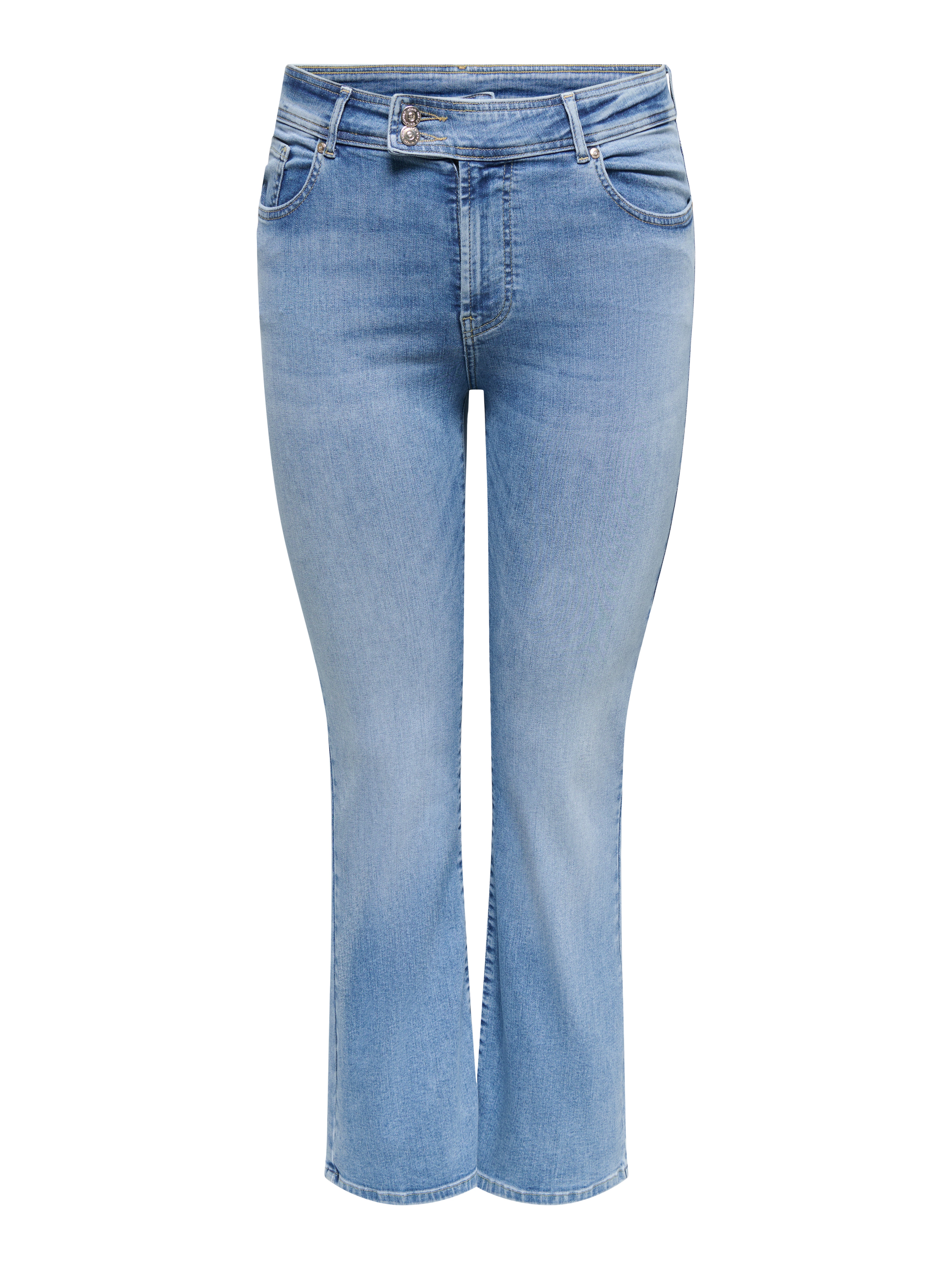 - Pasvorm : Curvy flared fit jeans zitten strak om de heupen en dijen en lopen vanaf de knieën wijder uit