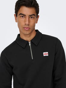 Laat je persoonlijke stijl zien met coole, tijdloze elementen die perfect zijn om elke dag te dragen, op school of op het werk. Katoen is gemaakt van natuurlijke vezels die samen zorgen voor een zachte en ademende stof. - Producttype : Sweatshirt - Hals : Polo - Mouw : Lange mouwen - Sluiting : Ritssluiting - Pasvorm : Regular fit