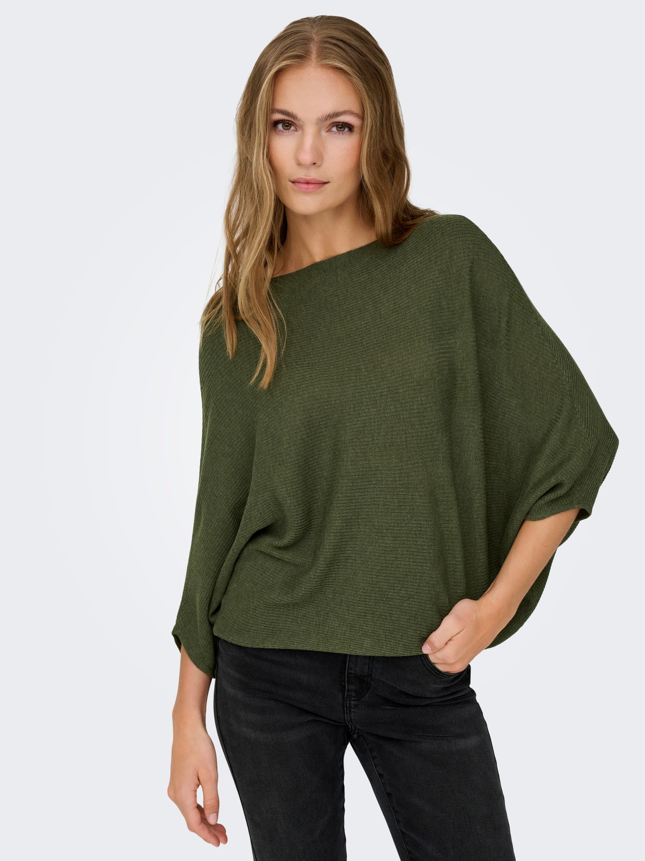 Wyglądaj świetnie w szkole, pracy i na co dzień w fajnych stylizacjach, które łatwo dopasować do ulubionych elementów garderoby. Płaski splot to rodzaj tkania materiału zapewniający elastyczność, wygodę i prostotę. JDY to międzynarodowa marka odzieżowa oferująca pełny zakres przystępnych cenowo i modnych produktów dla świadomych mody konsumentów. - Rodzaj produktu : Sweter wkładany przez głowę - Szyja : Dekolt w łódkę - Rękaw : Długie rękawy - Rękawy : Rękawy nietoperz - Krój : Krój dzianinowy - Skład dodatku : Poliester