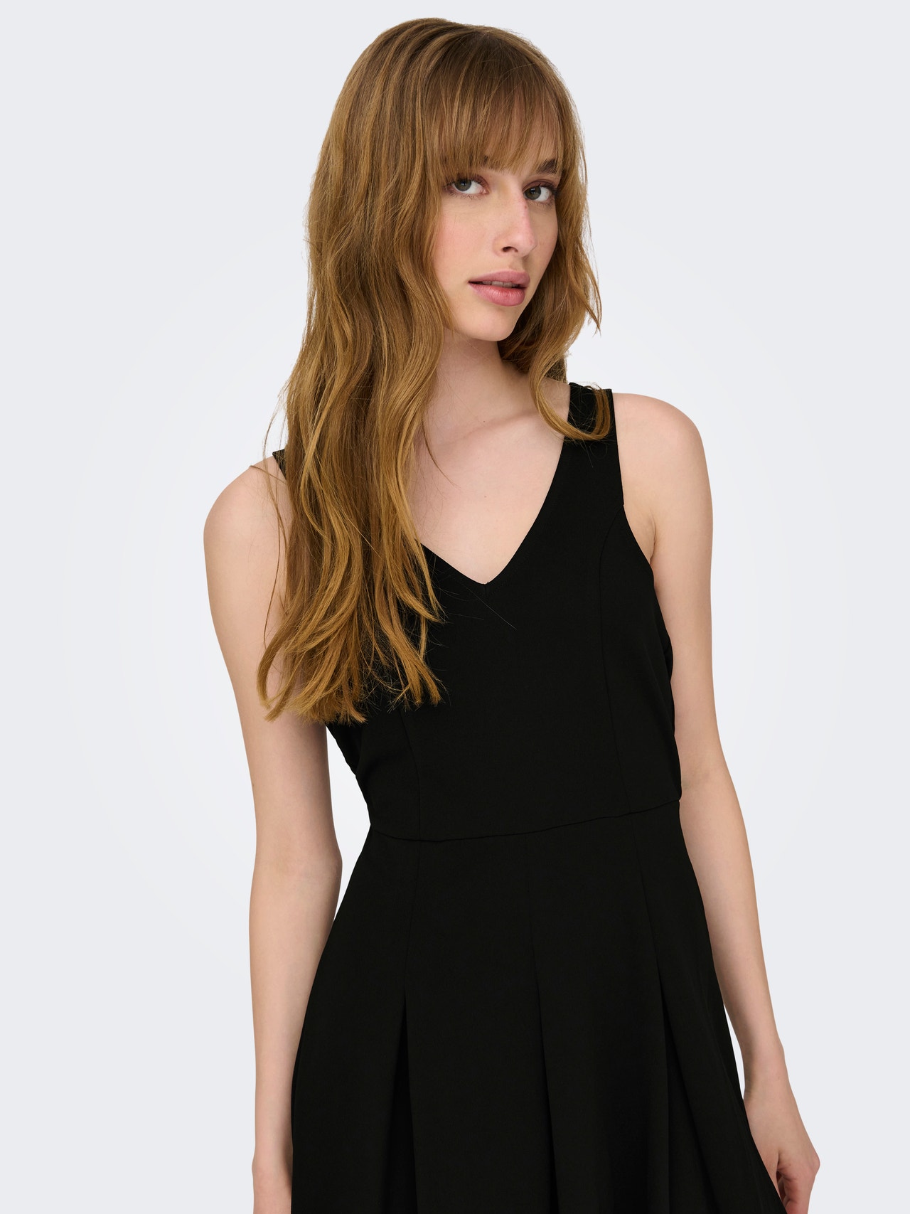 - Rodzaj produktu : Sukienka - Neck : Dekolt w serek - Rękaw : Bez rękawów - Długość/rozmiar : Nad kolano - Krój : Krój regularny