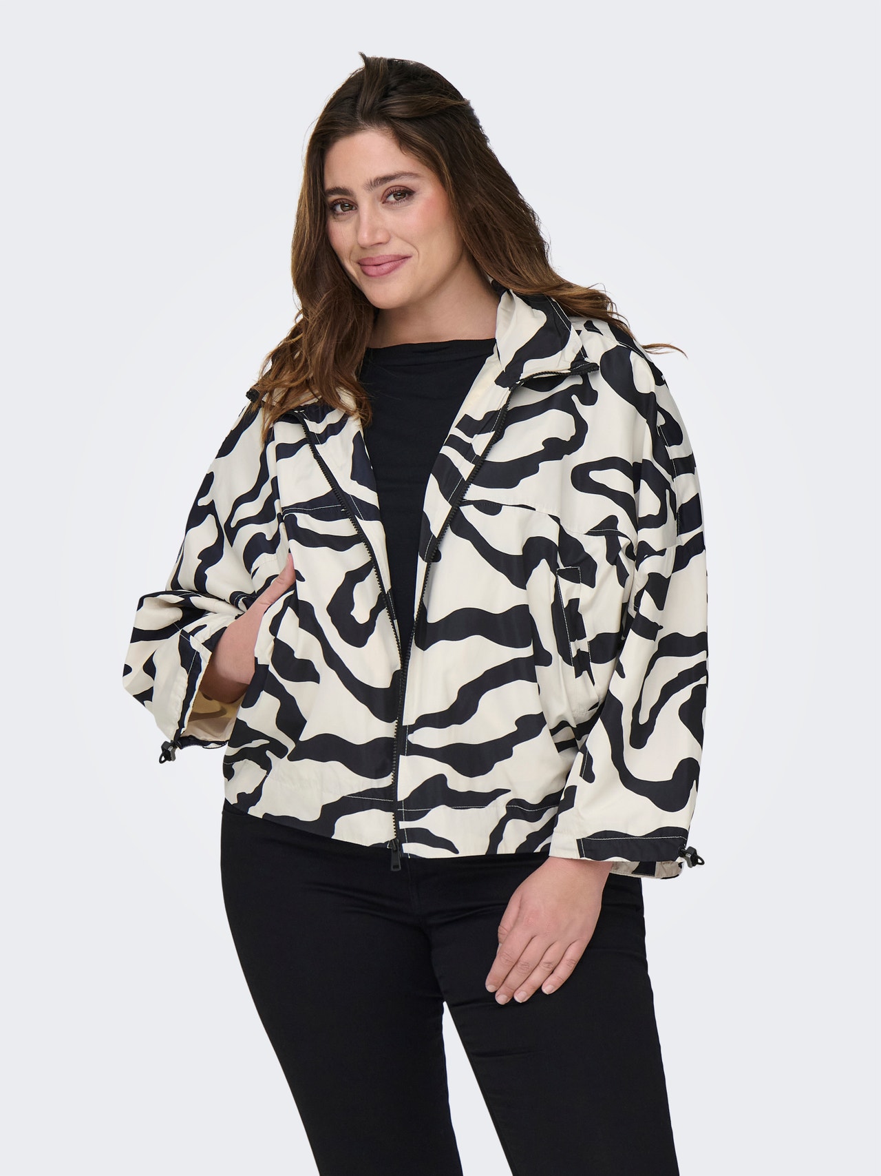 Wyglądaj świetnie w szkole, pracy i na co dzień w fajnych stylizacjach, które łatwo dopasować do ulubionych elementów garderoby. TYLKO CARMAKOMA jest dla kobiet o krągłościach, które kochają modę i wyrażają swój osobisty styl z pewnością siebie. Kolekcje obejmują nowoczesny dżins, pochlebne kroje i style na każdą okazję — od awangardowych i modnych po kobiece i klasyczne. Nasza oferta ubrań plus size została zaprojektowana tak, aby podkreślić Twoje krągłości i zapewnić wygodę, dzięki czemu każda kobieta plus size może czuć się pięknie i pewnie w swoim wyglądzie. Modele Curve zaprojektowano tak, by dobrze układały się na kobiecych sylwetkach.. - Rodzaj produktu : Kurtka - Szyja : Kaptur ze sznurkiem do regulacji - Rękaw : Długie rękawy - Mankiety : Mankiety z elastycznym wykończeniem - Zamknięcie : Zapięcie na suwak - Długość/rozmiar : Krótki - Podszewka : Podszewka z poliestru zapewnia przyjemny dotyk