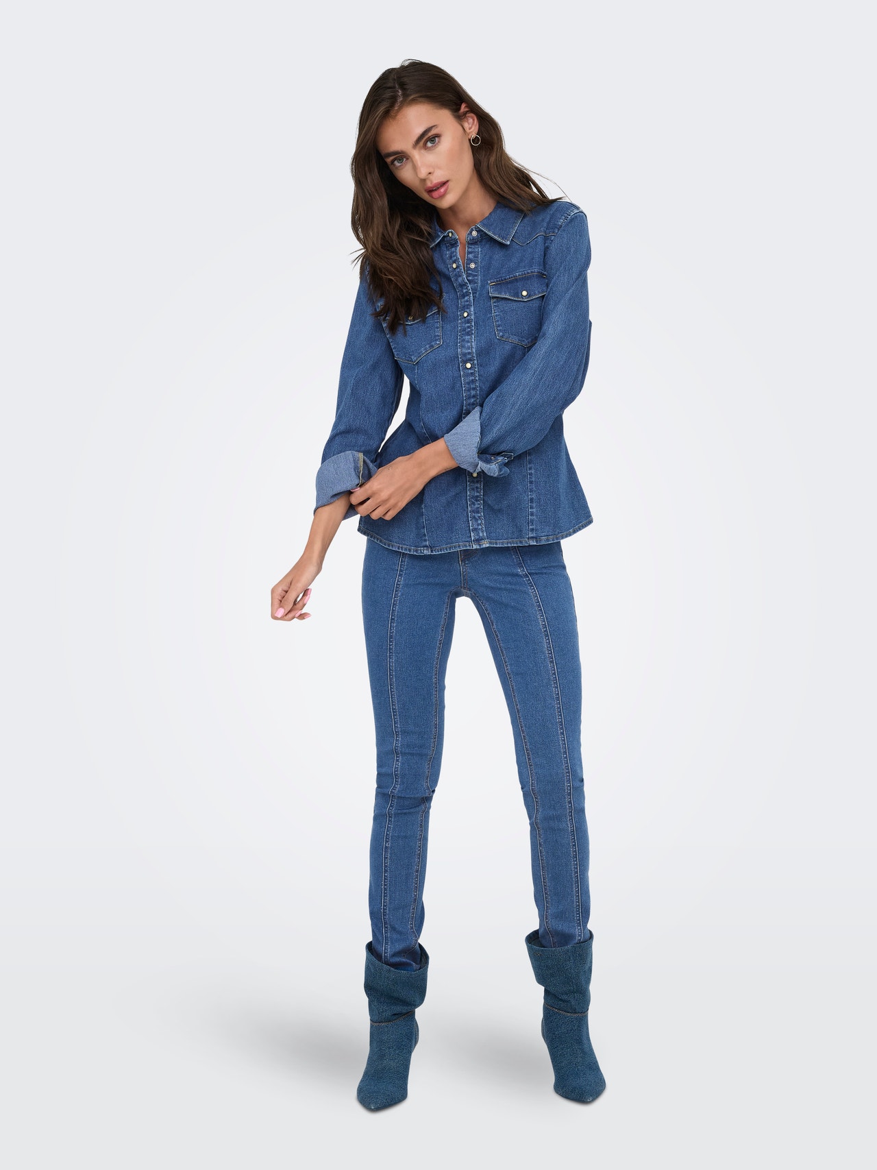 Noś swoje ulubione spodnie lub spódnicę do nowej koszuli jeansowej i stwórz ponadczasową stylizację lub ubierz się w jeans od stóp do głów, aby uzyskać modny i nietypowy wygląd.