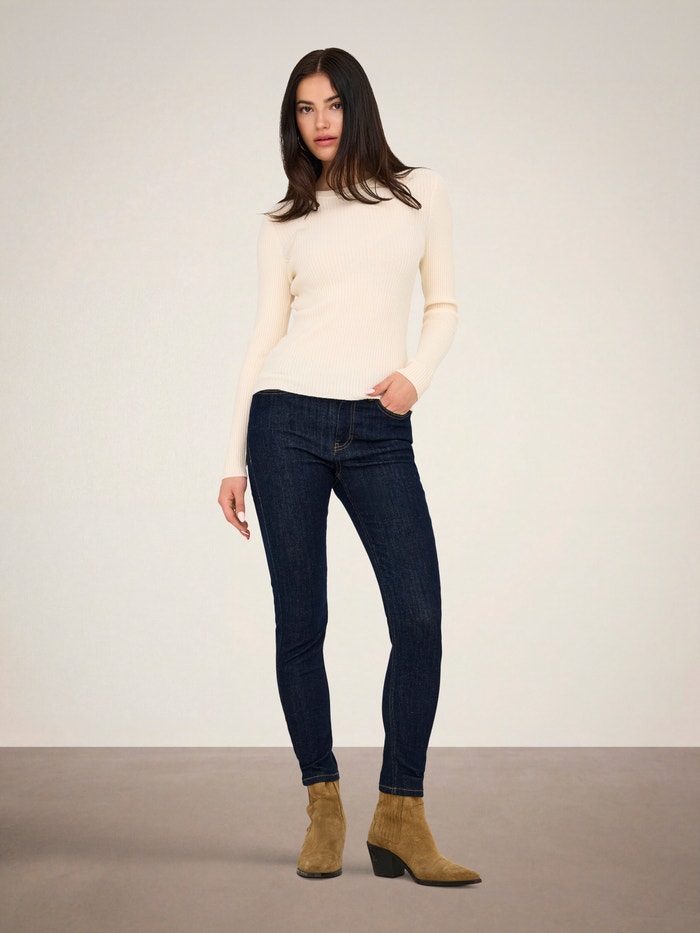 - Krój : Jeansy o kroju skinny ciasno opinają nogi od biodra po kostkę