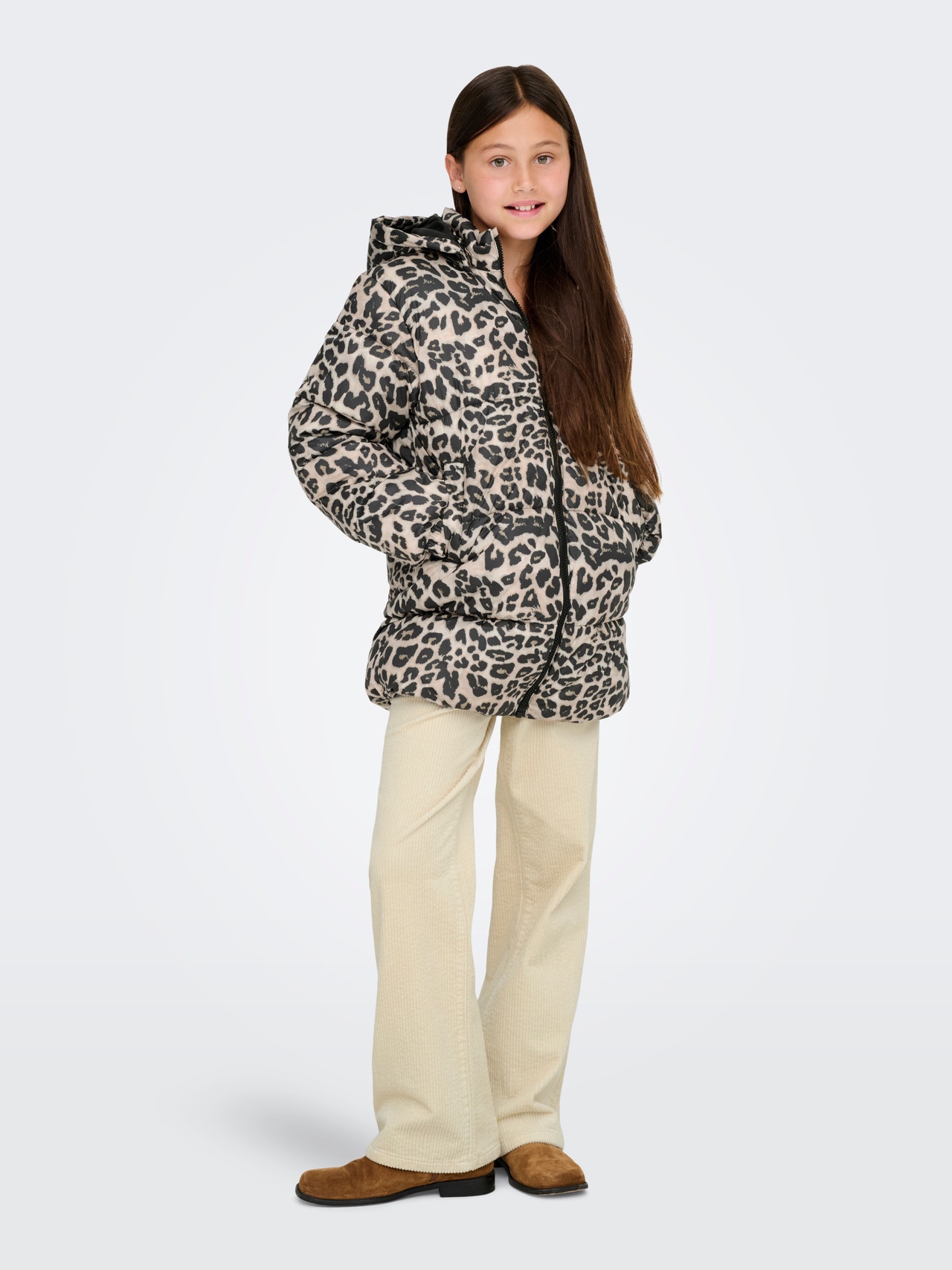 Nasz model ma 140 cm wzrostu i nosi rozmiar 140