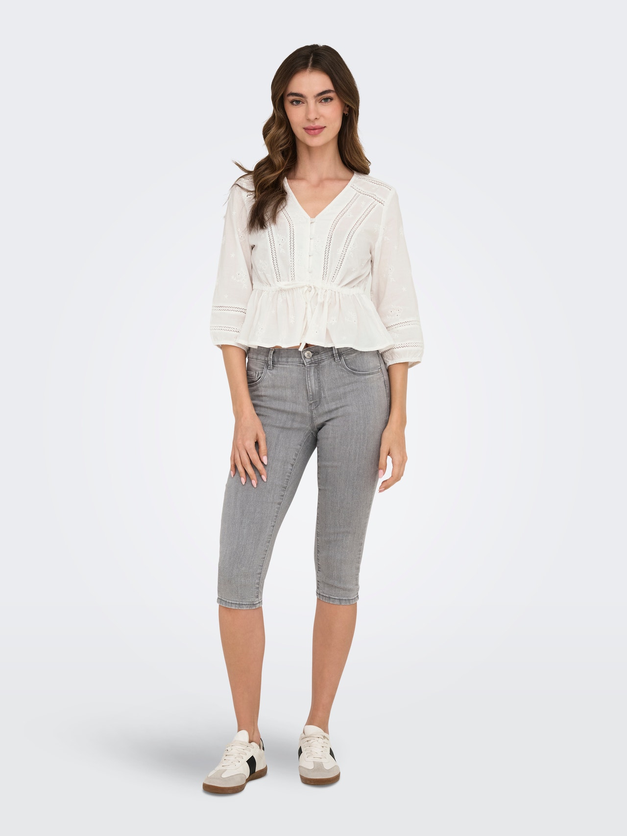 - Szczegóły : Pasek w talii, Zdobienia z haftu angielskiego, Elastyczny brzeg, Elastyczny pas w talii, Element z koronki