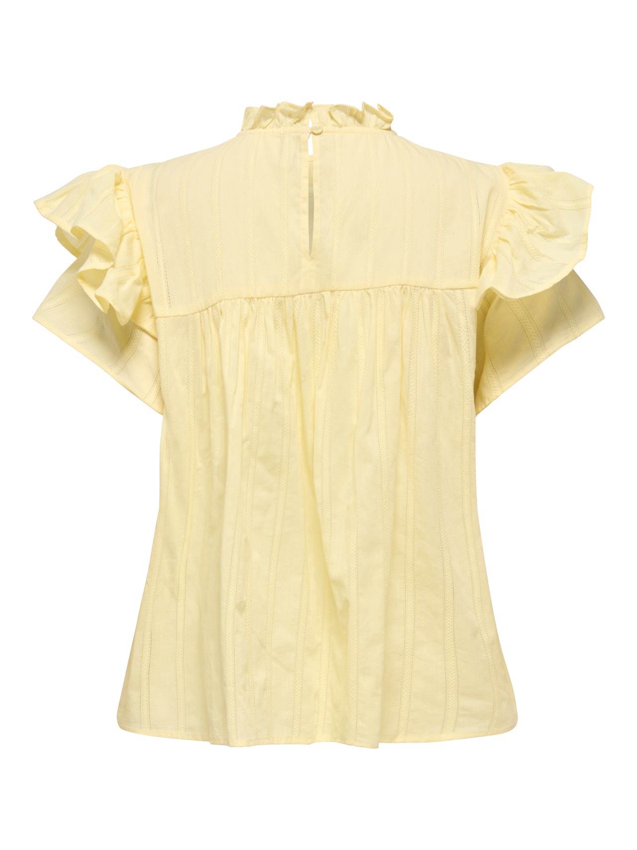 Uzupełnij swoją garderobę o stylowe niezbędniki, takie jak t-shirty i topy, które łatwo dopasować do posiadanych rzeczy. Tkaniny powstają poprzez tkanie ze sobą dwóch lub więcej włókien, co daje ponadczasowy wygląd. - Rodzaj produktu : Góra - Szyja : Okrągły dekolt - Rękaw : Bez rękawów - Zamknięcie : Zapięcie na guzik - Szczegóły : Falbanki - Krój : Krój regularny