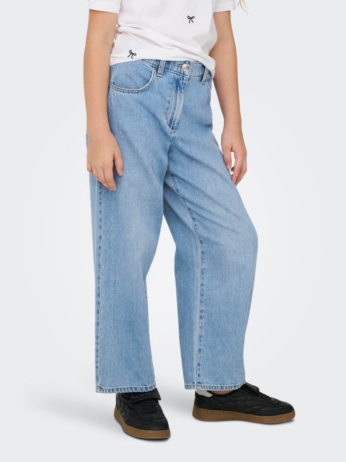 Dżinsy ONLY GIRLS są zarówno wygodne, jak i super stylowe! Z dżinsem w swoim DNA, oferują uniwersalny wygląd, który można łatwo stylizować na każdą okazję. Zaprojektowane z naciskiem zarówno na wygodę, jak i swobodę ruchów, pozwalają pozostać aktywnym przez cały dzień. Wystylizuj je z fajnym T-shirtem i trampkami, aby uzyskać swobodny i nowoczesny strój.