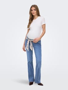 Jeśli szukasz kobiecego i pochlebnego wyglądu w czasie ciąży, nasze ciążowe jeansy o rozszerzanym kroju są idealnym wyborem. Te dżinsy mają klasyczny dopasowany krój u góry, z subtelnym rozkloszowaniem poniżej kolan, które tworzy elegancką, wydłużającą nogi sylwetkę. Wygodna konstrukcja z wybrzuszeniem delikatnie wspiera brzuch, a regulowany pas sprawia, że dżinsy dostosowują się do zmian zachodzących w Twoim ciele. Stylizuj je dokładnie tak, jak lubisz – przez całą ciążę.