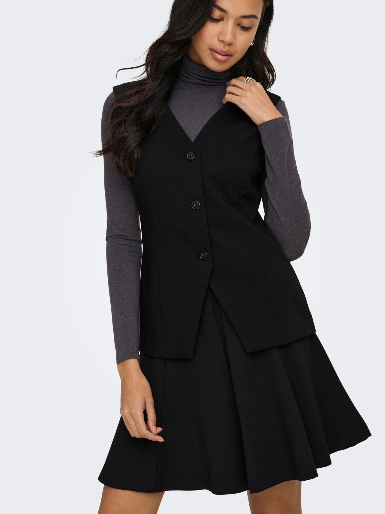 Nosso modelo tem 176 cm de altura e está usando o tamanho S