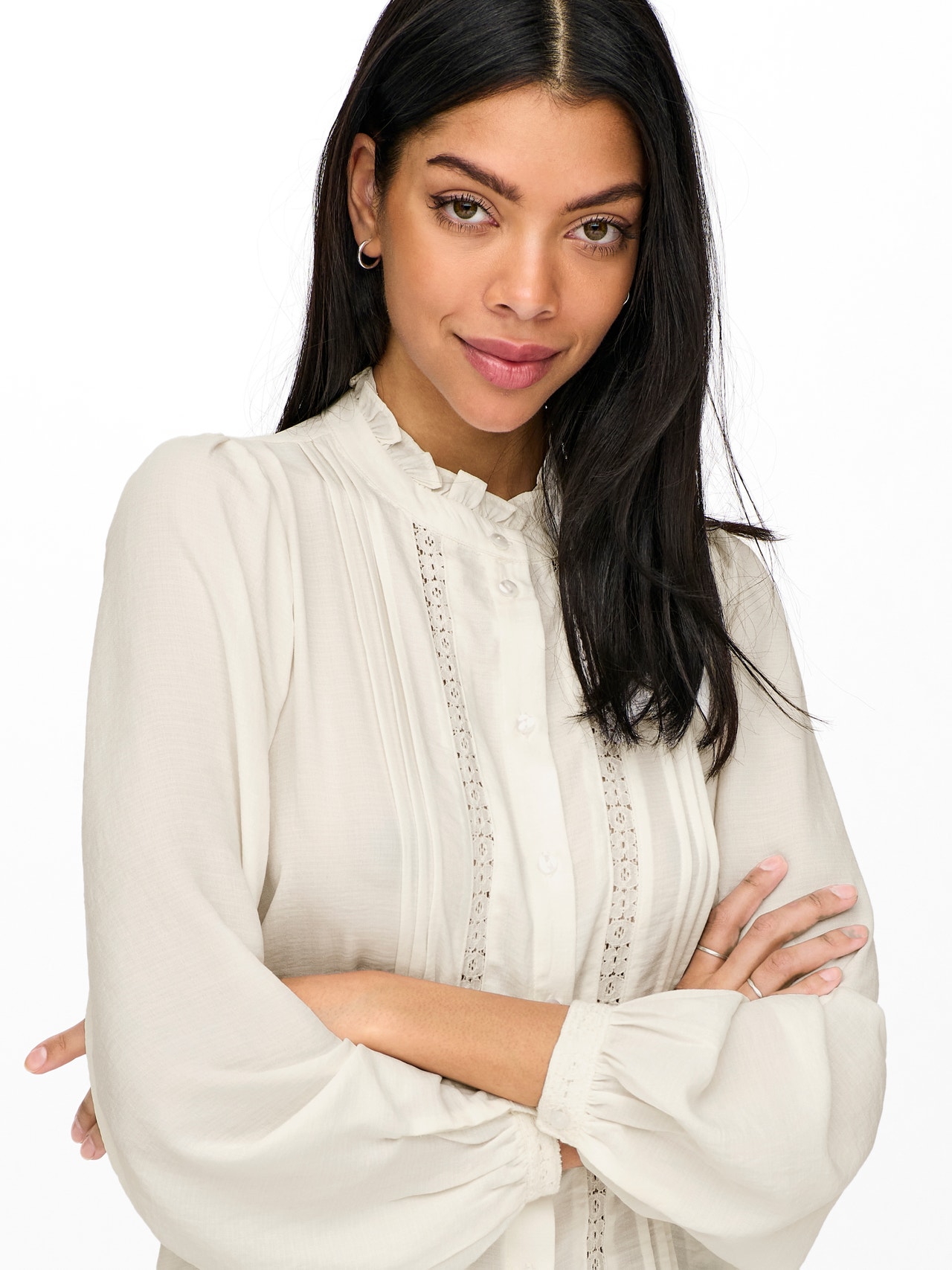 Adicione cores suaves e detalhes subtis ao seu guarda-roupa com uma camisa feminina fácil de combinar com calças de ganga intemporais ou uma saia à medida. Os tecidos são criados através da tecelagem de dois ou mais fios para um aspeto intemporal. A JDY é uma marca de moda global com um conceito integral, que oferece produtos acessíveis e de acordo com as tendências para o consumidor interessado em moda. - Tipo de produto : Camisa - Decote : Gola de camisa - Manga : Mangas Compridas - Mangas : Mangas com volume - Tipo de Punho : Punhos com botões - Fecho/braguilha : Fecho de botão - Detalhes extra : Folhos, Detalhe de renda - Ajuste : Regular Fit