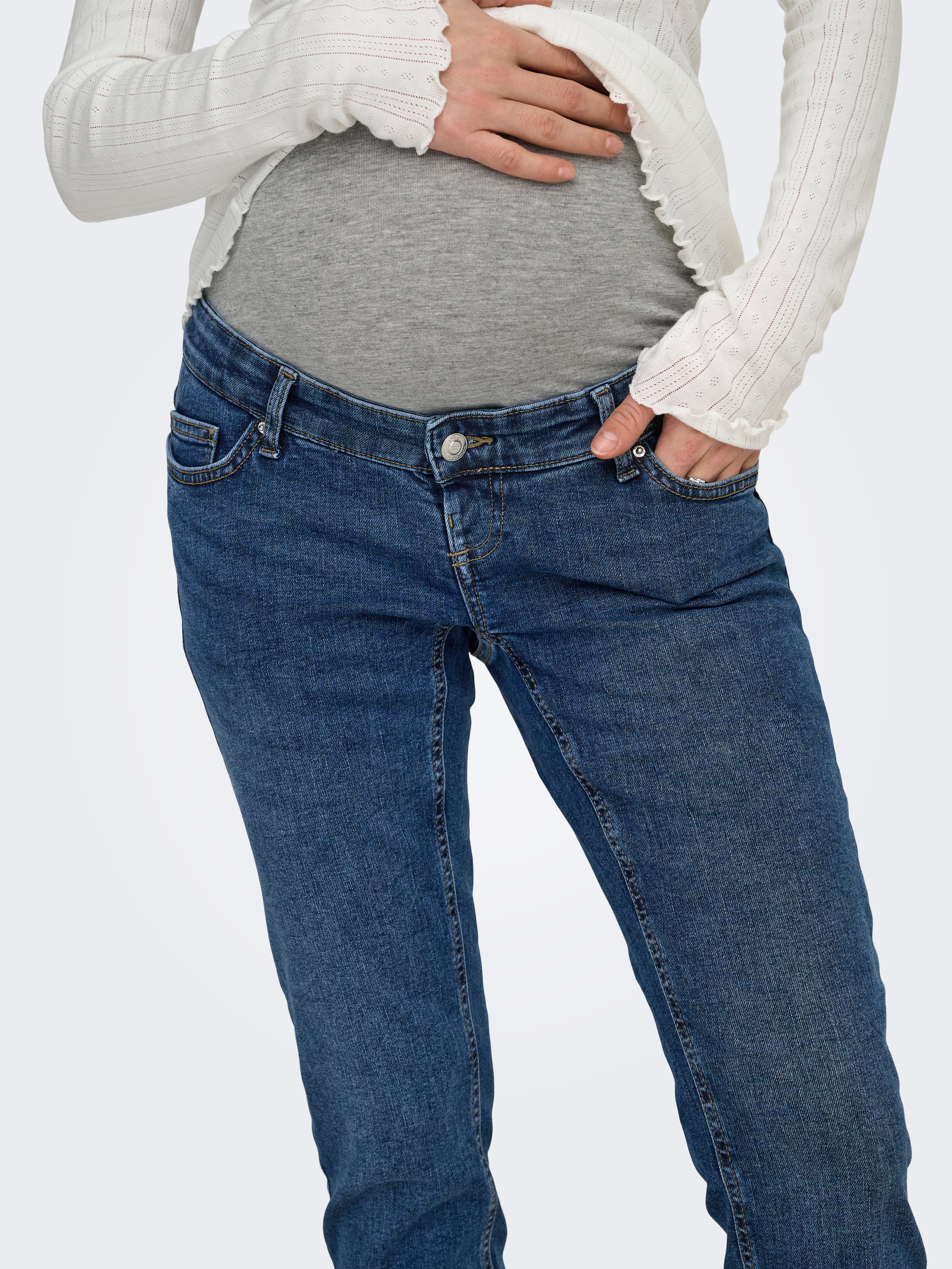 Sinta-se confortável e elegante durante toda a sua gravidez com os nossos jeans skinny fit de maternidade da ONLY MATERNITY. Estes jeans são projetados com um corte apertado que abraça suas pernas para um visual moderno e aerodinâmico - sem comprometer o conforto. A solução suave over-bump fornece apoio à sua barriga, enquanto o cós ajustável garante que o jeans cresça consigo durante toda a gravidez. Os detalhes subtis das costuras e os bolsos frontais falsos criam um aspeto limpo e minimalista, sem quaisquer elementos que distraiam. Um must-have em qualquer guarda-roupa de maternidade.