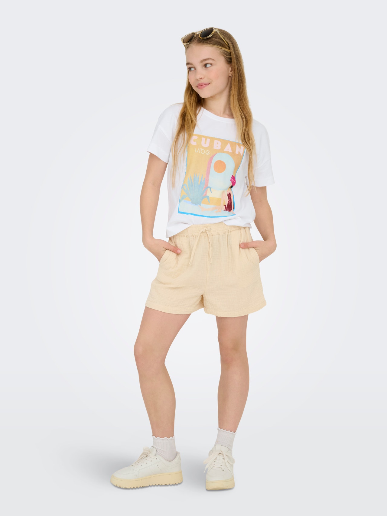 Prepare-se para os dias de sol com calções da ONLY GIRLS! Coloridos e desportivos, são perfeitos para férias e jogos. Combine-os com uma t-shirt e sandálias para um look de verão fresco que mantém o conforto e o estilo intactos durante todo o dia.