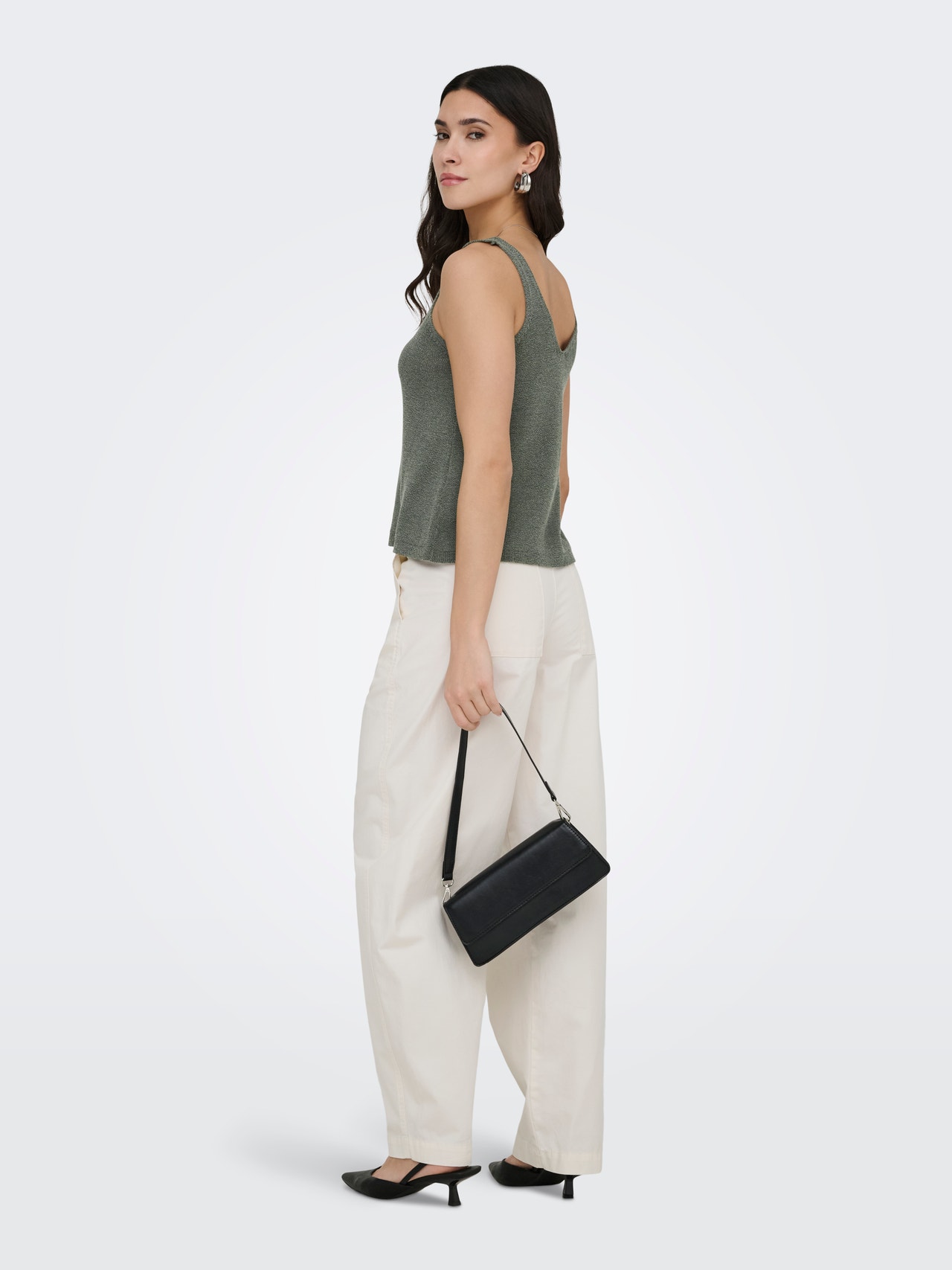 Mude a sua roupa do dia a dia num segundo, adicionando um top feminino para uma aparência suave e requintada.