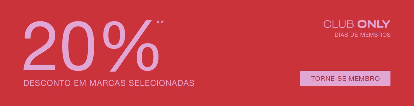 **Exclusivo para membros de 24/04 a 26/04/2026. Não se aplica a jeans. Apenas em marcas selecionadas. Não pode ser combinado com outros descontos ou promoções.