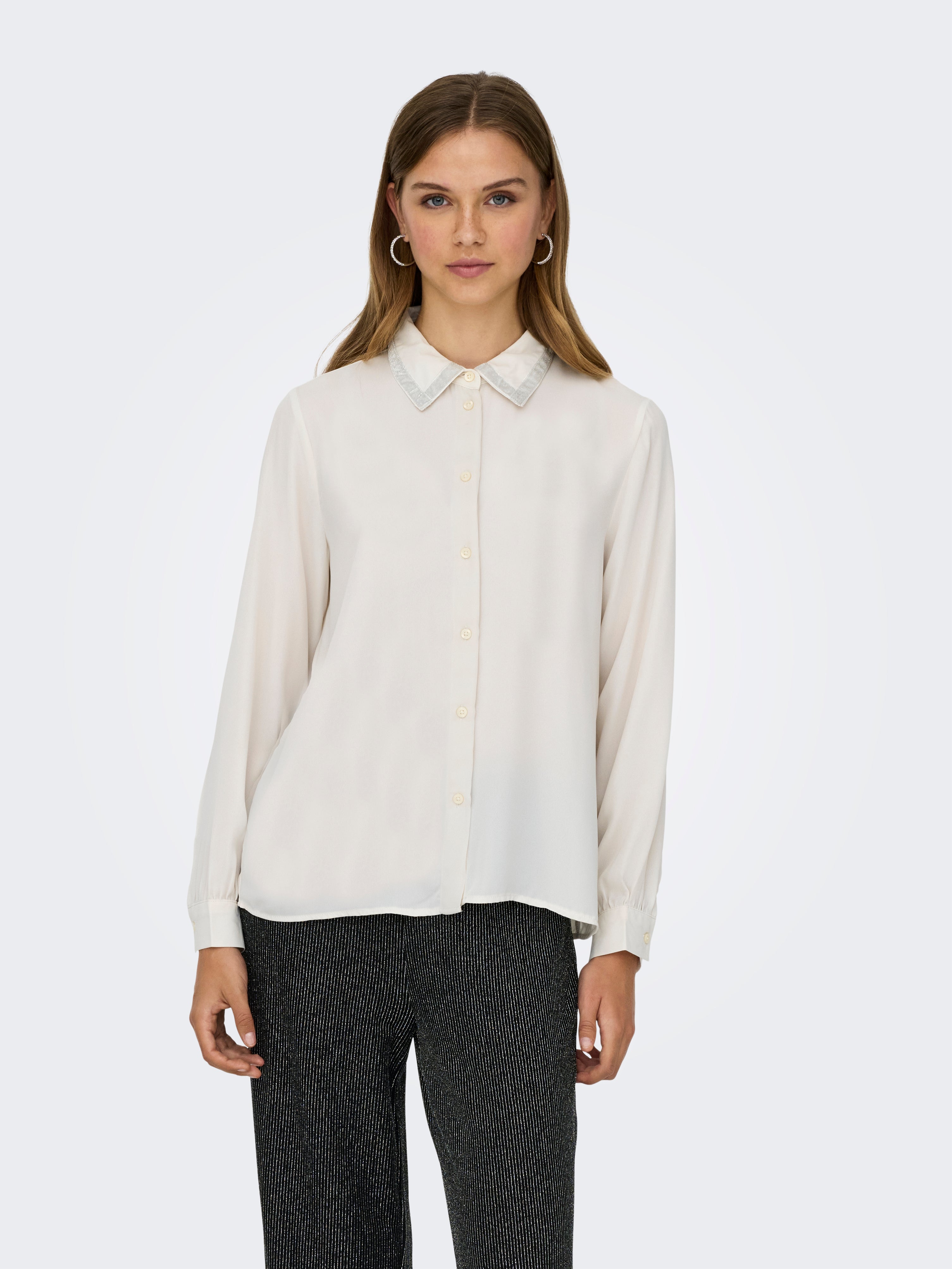 Adicione cores suaves e detalhes subtis ao seu guarda-roupa com uma camisa feminina fácil de combinar com calças de ganga intemporais ou uma saia à medida.