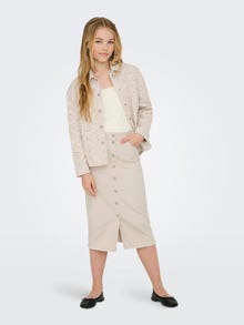 Adicione um toque feminino ao guarda-roupa com as nossas saias da ONLY GIRLS! De saias plissadas fofas a saias jeans legais, elas são perfeitas tanto para o uso diário quanto para ocasiões especiais. Combine-os com uma t-shirt e sapatilhas para um look desportivo, mas feminino que irradia personalidade. KIDS ONLY é uma marca de moda para crianças com estilo. Explore um mundo de artigos de ganga imprescindíveis, estilos de rua modernos e outros favoritos da moda. - Tipo de produto : Saia de Ganga - Fecho/braguilha : Fecho de botão - Bolsos : Bolsos traseiros, Bolso para moedas, Bolsos frontais - Cintura/cós : Cintura média - Comprimento/tamanho : Comprimento médio - Detalhes extra : Fivela do cinto, Cintura elástica - Atenção : AVISO! Manter longe de fogo.