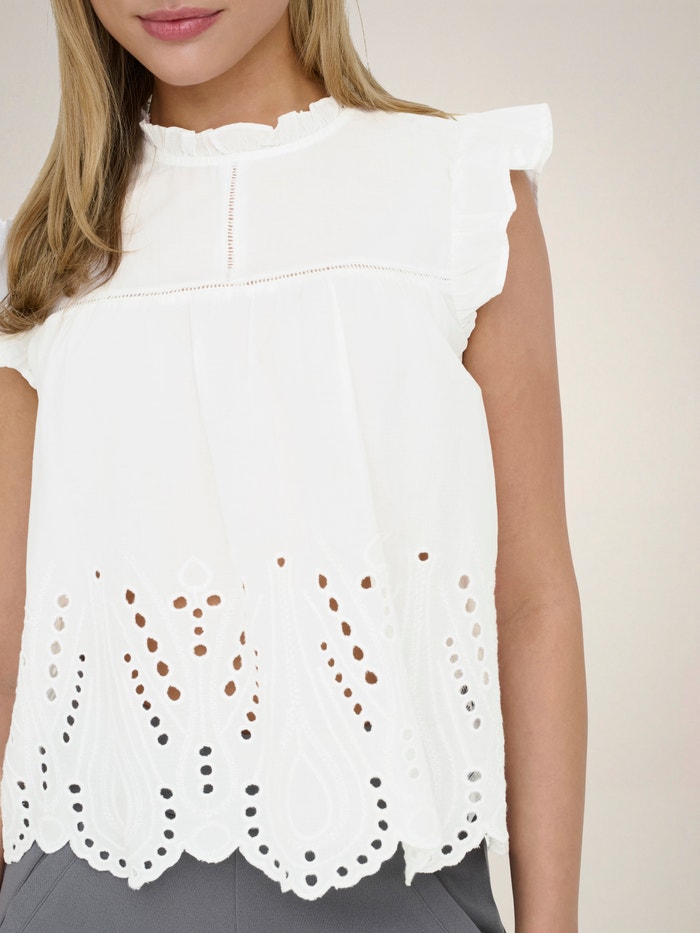 Mude a sua roupa do dia a dia num segundo, adicionando um top feminino para uma aparência suave e requintada.