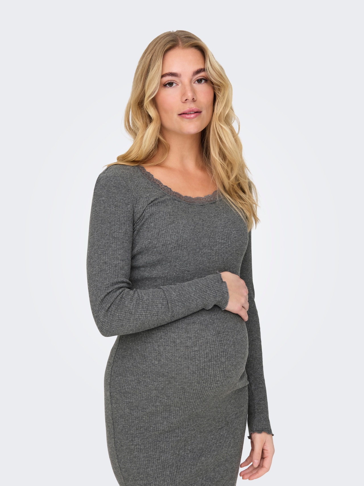Os estilos de maternidade são concebidos para caber e suportar a gravidez. Escolha o seu tamanho normal para um aspeto lisonjeiro.