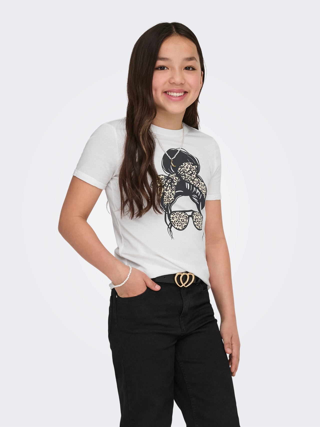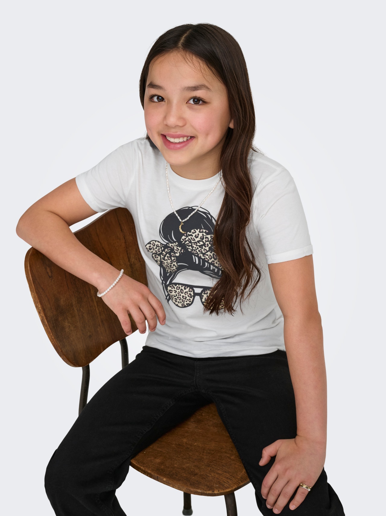 Nosso modelo tem 140 cm de altura e está usando o tamanho 134/140
