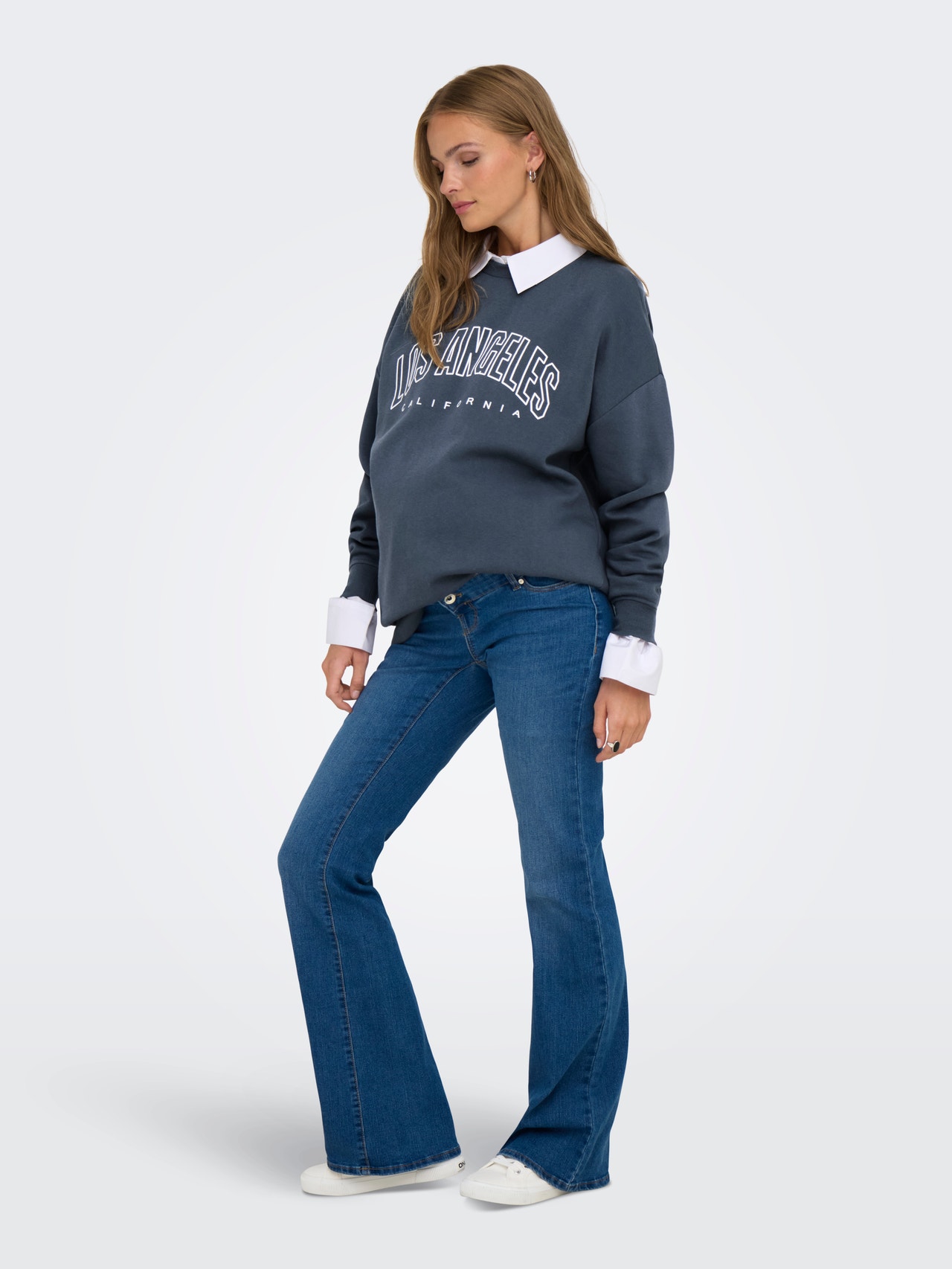 Relaxe em casa ou crie um visual moderno para o fim-de-semana e atividades diárias com estilos de roupa casual suaves e intemporais que são fáceis de vestir. Os estilos de maternidade são concebidos para caber e suportar a gravidez. Escolha o seu tamanho normal para um aspeto lisonjeiro. - Tipo de produto : Sweatshirt - Decote : Decote em O - Manga : Mangas Compridas - Mangas : Ombros caídos - Tipo de Punho : Punhos em malha canelada - Tipo de corpo : Maternidade - Ajuste : Loose Fit