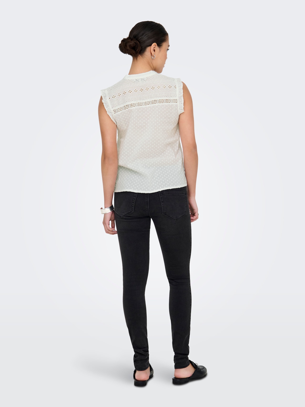 Mude a sua roupa do dia a dia num segundo, adicionando um top feminino para uma aparência suave e requintada.