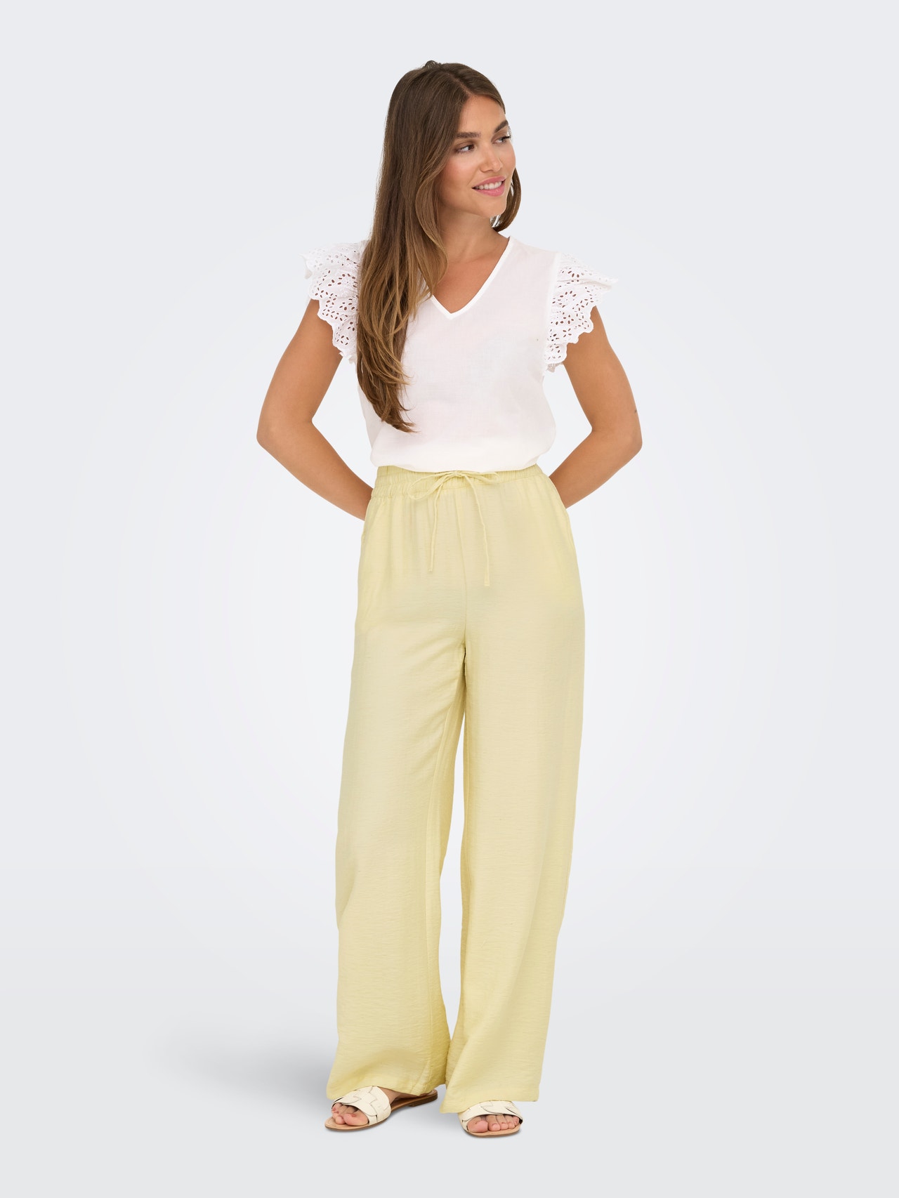 Encontre o par de calças perfeito e combine-o com uma camisa simples e um par de ténis para o dia-a-dia, ou combine-o com um top festivo e saltos altos para uma saída à noite.