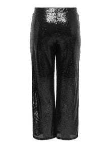 Encontre o par de calças perfeito e combine-o com uma camisa simples e um par de ténis para o dia-a-dia, ou combine-o com um top festivo e saltos altos para uma saída à noite. Os estilos de curvas são concebidos para se adaptarem ao corpo feminino com curvas. - Tipo de produto : Calças - Detalhes extra : Lantejoulas, Cintura elástica - Tipo de corpo : Curve - Ajuste : Wide Leg Fit