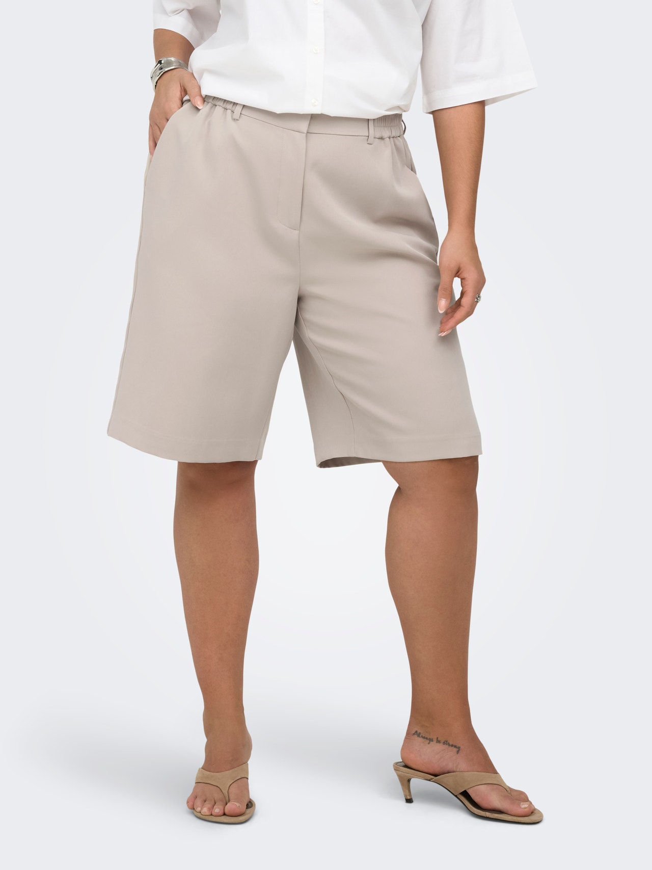 Mostre as suas pernas com um par de calções à medida e crie um visual intemporal com uma camisa e um par de sapatos baixos.