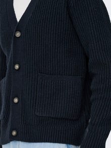 Incorpore peças de aspeto casual no seu guarda-roupa e crie um conjunto elegante e simples, adequado a qualquer ocasião ou vista a sua roupa formal e de festa. - Tipo de produto : Cardigan - Decote : Decote em V - Manga : Mangas Compridas - Fecho/braguilha : Meio fecho com botão - Ajuste : Relaxed Fit