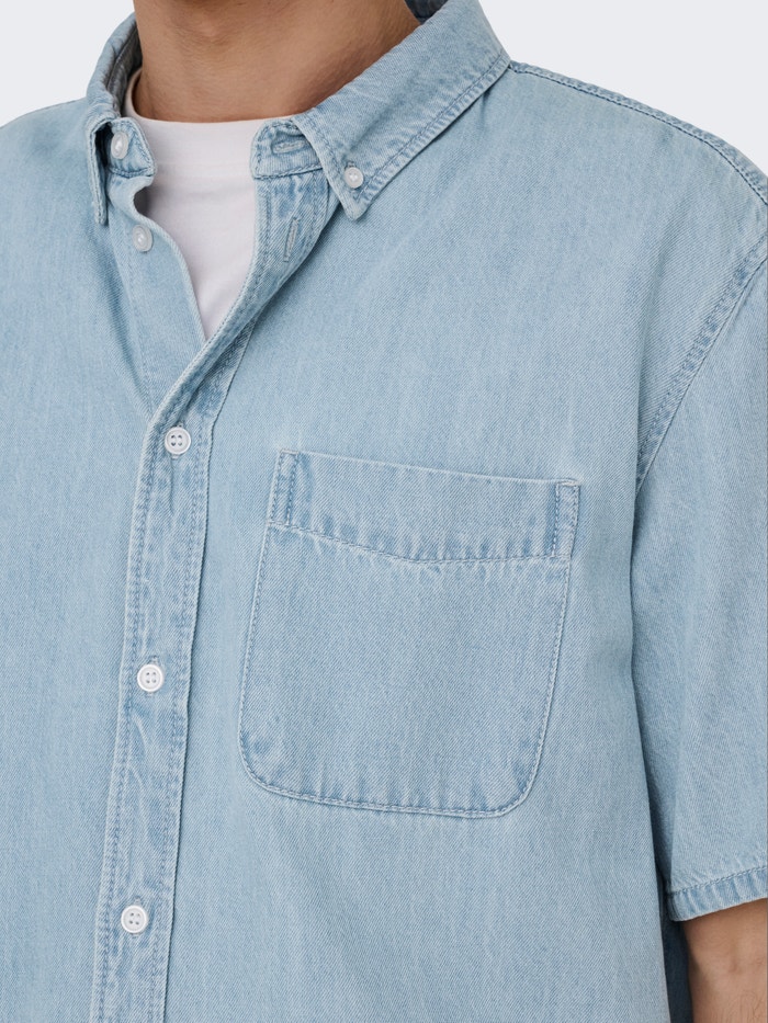 - 62% Algodão, 20% Algodão Reciclado, 18% Lyocell TENCEL™