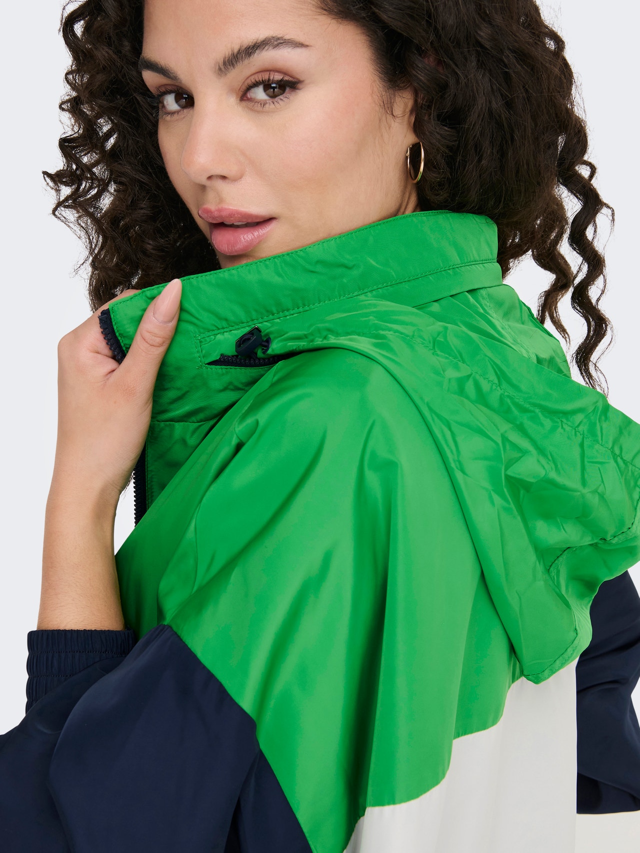 - Extra details : Hidden hood inside collar